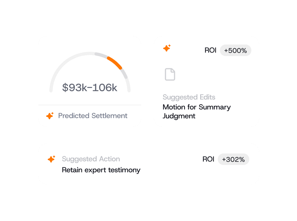 Our system identifies gaps, contradictions, and high-risk elements across the file. You get a clear, data-backed picture of strengths and vulnerabilities, helping you prepare for negotiation, dispositive motion practice, or trial with full strategic clarity.